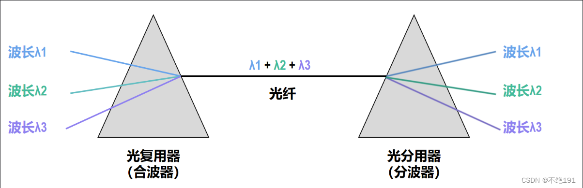 波分复用其实就是光的频分复用,把光信号调制到不同的频段,然后整合发送出去,接受方再把不同频段的信号拆分出来。