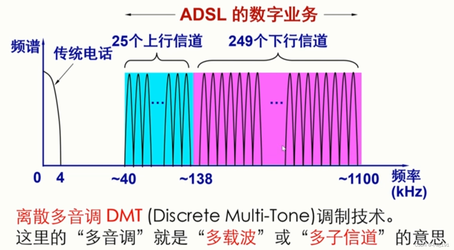 这样就使 ADSL 能够选择合适的调制方案以获得尽可能高的数据率。