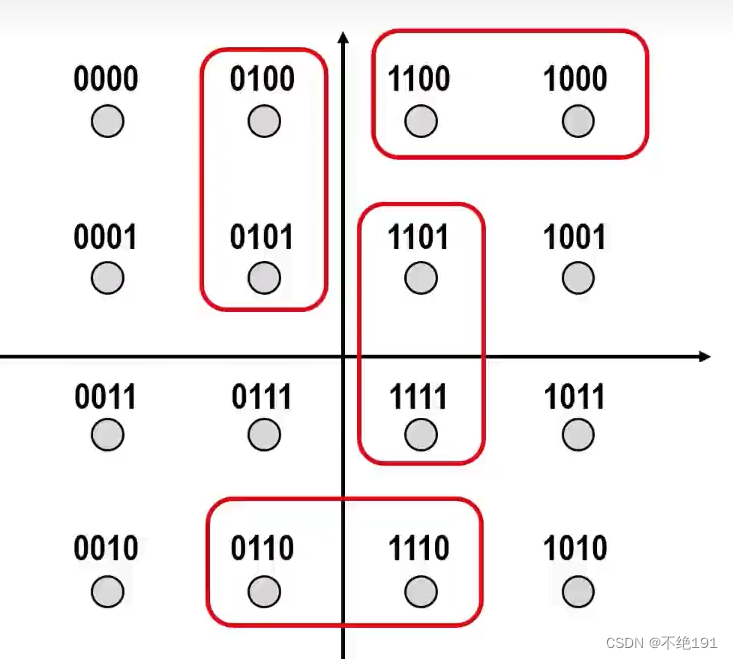 每个码元和比特组合的对应关系不能随便定义,每个码元与4个比特的对应关系采用格雷码,即任意两个相邻码元只有1个比特不同
