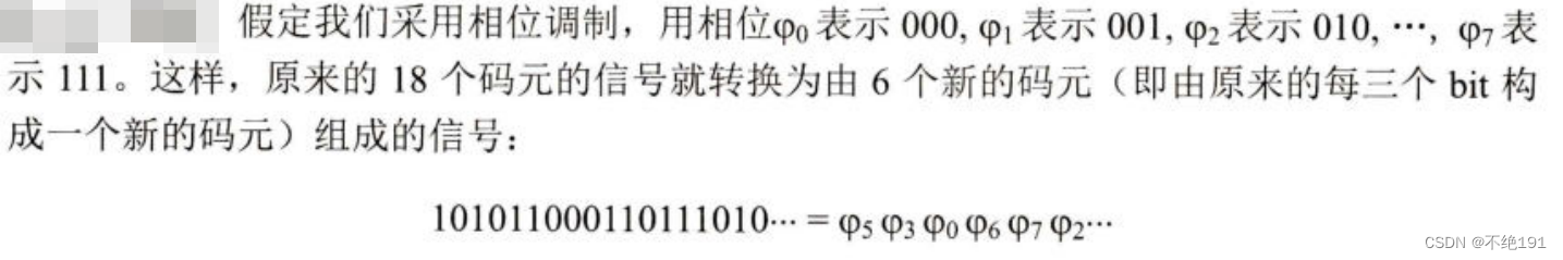 也就是说,若以同样的速率发送码元,则同样时间所传送的信息量就提高到了3倍。设想把信号中的每8个比特编为一组,即原来的8个码元的信号转换为1个新的码元。这样,数据传输速率可提高到8倍。