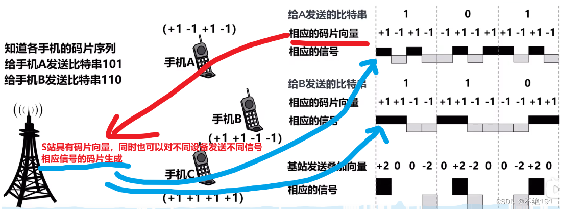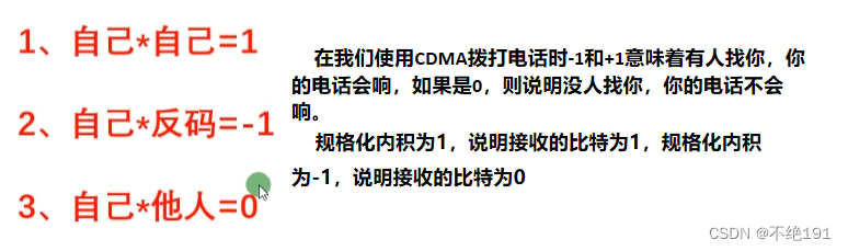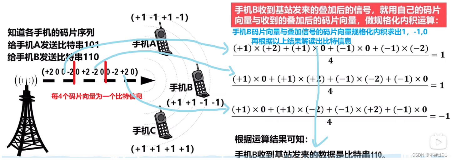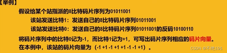 码片序列相当于身份信息,发送的信号如果与码片能对应上,即为1;如果表现为反码即为0