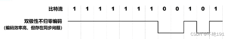 归零编码相当于将时钟信号用“归零”方式编码在了数据之内,这称为“自同步”信号。然而,归零编码中大部分的数据带宽,都用来传输“归零”而浪费掉了所以总结为“自同步,但编码效率低”