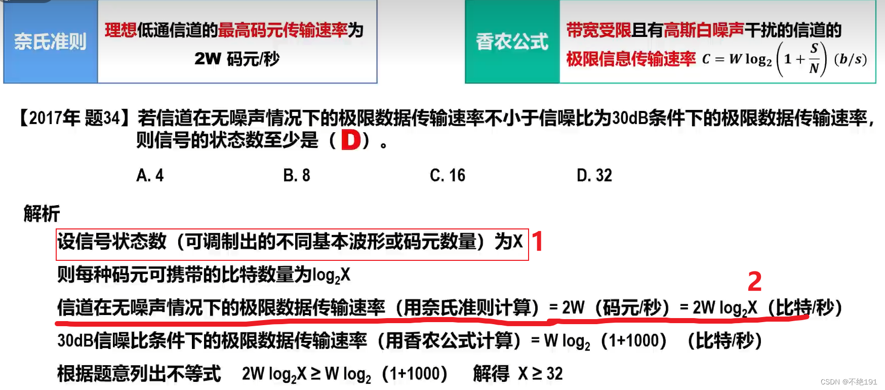 奈氏准则(根据频率带宽算出最高码元传输速率)