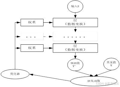 • 损失函数:计算预测值与真实值之间的差距。