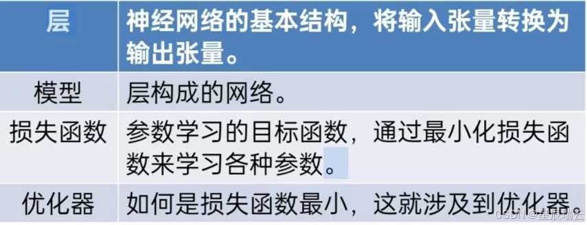 • :包括卷积层、池化层、全连接层等。层是神经网络的基本结构,输入张量通过层后变为输出张量。