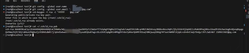 2.使用命令:ssh-keygen -t rsa -C your_email@example.com,来配置密钥,按三次回车;使用命令:cat ~/.ssh/id_rsa.pub,查看公钥