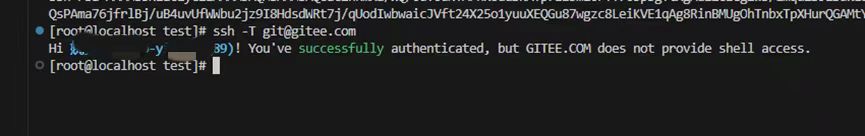 3.点击Gitee中设置,点击安全设置下的“SSH公钥”,添加公钥,添加成功后,可以使用命令:ssh -T git@gitee.com,测试是否连通