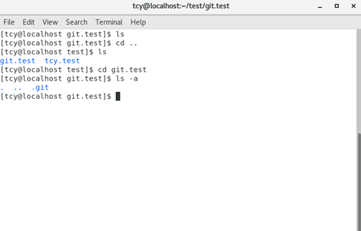 名为“git.test”,可以通过命令:ls -a,看到自动生成了一个隐藏文件.git,初始化就算完成了。