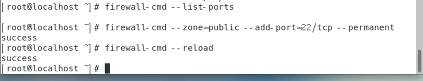 如果出现连接失败的情况,可能是端口开放情况出现了问题,通过命令:sudo firewall-cmd --list-ports,查看已开放端口,发现执行结果为空,说明当前未显示有开放的端口,继续执行命令:firewall-cmd --zone=public --add-port=22/tcp --permanent ,来开放端口,最后执行:firewall-cmd –reload重新加载防火墙配置