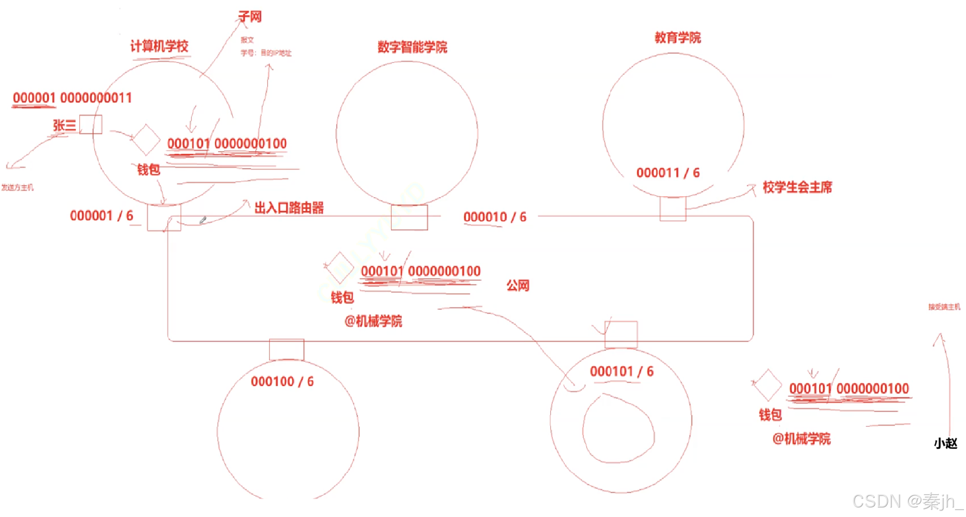 主席就是路由器,群聊就是公网,每个院都是一个子网。