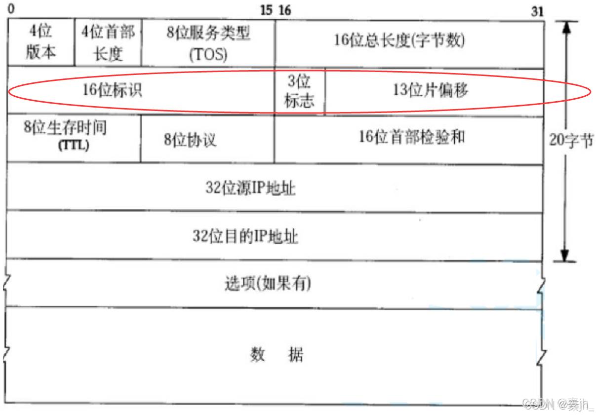 - 16 位标识(id): 唯一的标识主机发送的报文. 如果 IP 报文在数据链路层被分片了, 那么每一个片里面的这个 id 都是相同的.