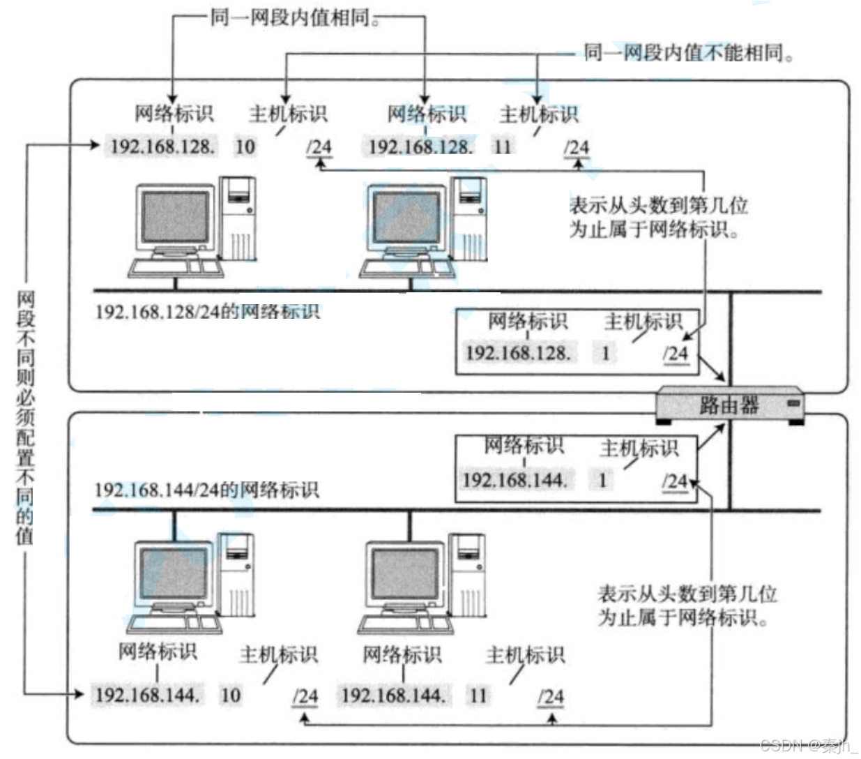 通过合理设置主机号和网络号, 就可以保证在相互连接的网络中, 每台主机的IP地址都不相同.