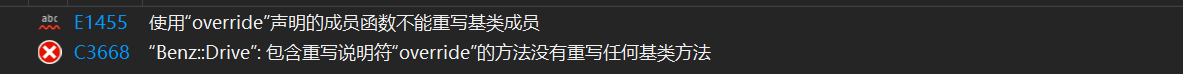 派生类需要重写(覆盖)基类中的虚函数,函数签名(返回值类型、函数名、参数列表)必须与基类完全一致。