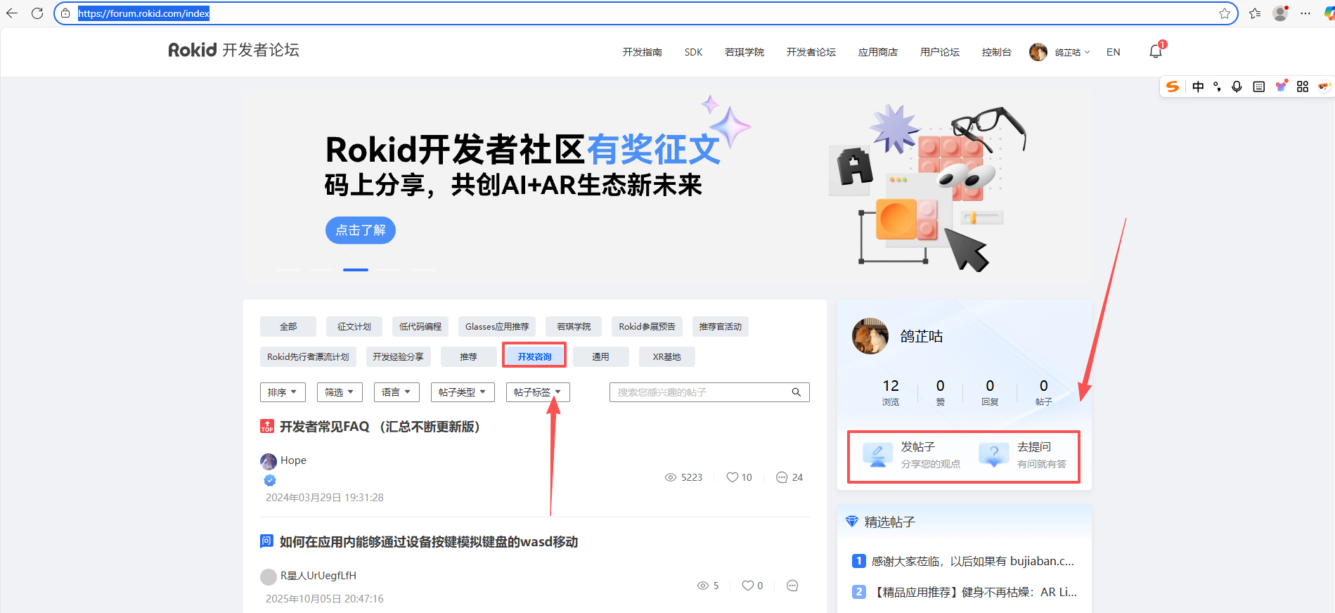 如果以上方案都没有解决你的问题,你还可以前往 Rokid 官方论坛发帖提问,邀请论坛里的各路技术大神共同探讨,助力问题解决。