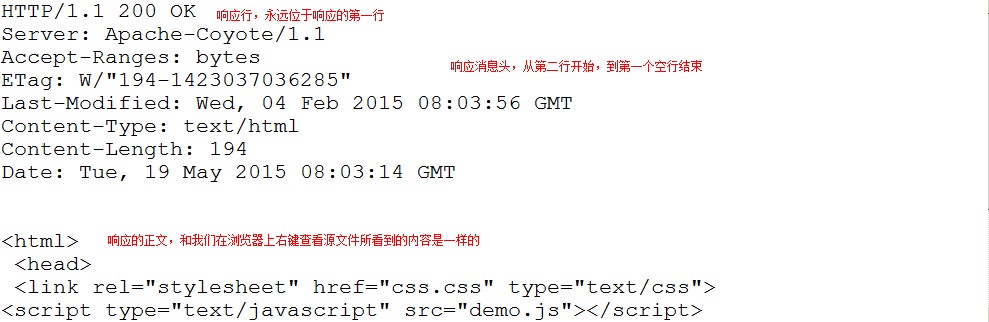 - 服务器向浏览器做出响应时,携带数据叫 响应报文