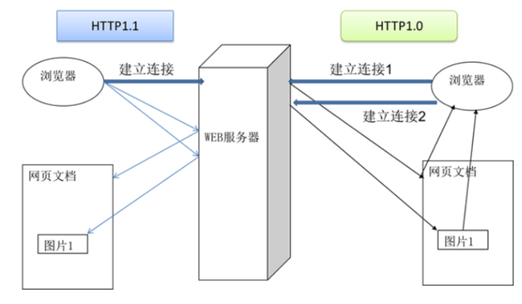 目前 HTTP协议 主要是 1.0 版本和 1.1 版本。这两个版本的区别主要是两个方面。