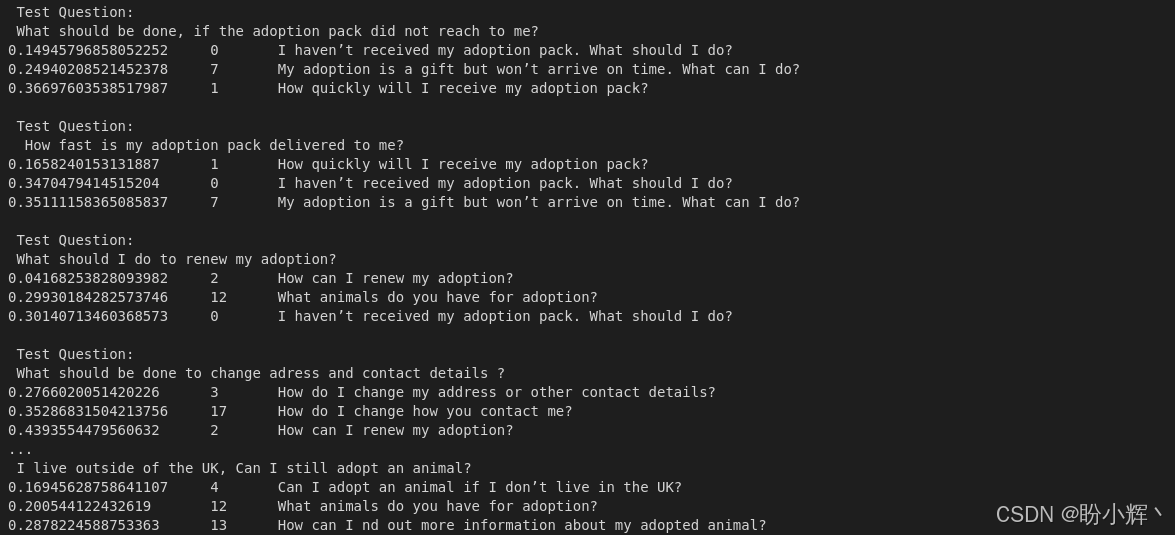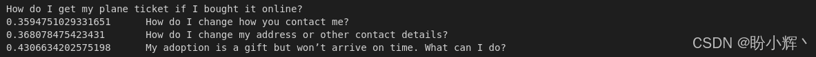 可以看到,顺序为 0、1、2、3、4 的索引,这意味着模型成功地找到了与预期相似的问题。
