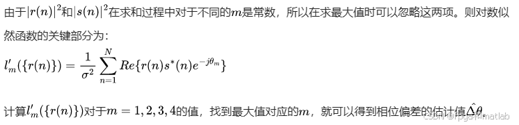 VV算法通过计算不同假设相位下的对数似然函数,找到使对数似然函数最大的相位作为相位偏差的估计值。即: