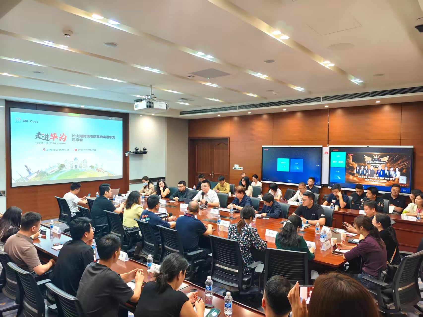10月29日下午,松山湖跨境电商基地“走进华为”思享会在华为欧洲小镇成功举行。本次活动由数字贸易港指导,东莞市松山湖电子商务协会、联合金融跨境产业园与松山湖开发者村联合主办,汇聚了松山湖地区近30家企业董事长、CEO等高层管理者,共同探讨企业出海新路径,深度解读专项扶持政策。