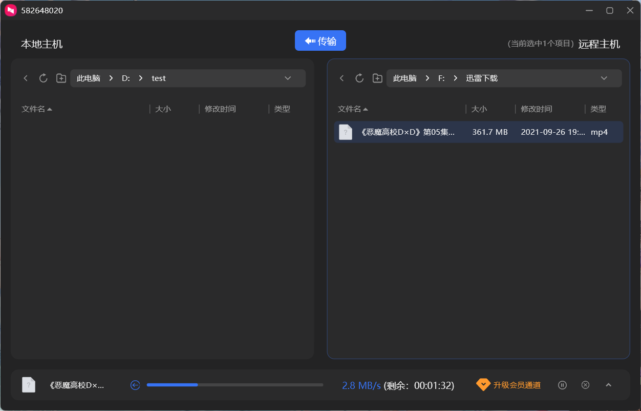 在测试同一文件时,向日葵的文件传输速度相对于ToDesk的传输速度略低,平均传输速度在2.8MB/s ~ 3.2MB/s。