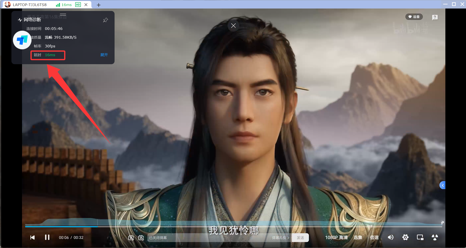 在视频播放过程中,基本没有卡顿,网络延时维持在16ms~25ms左右。