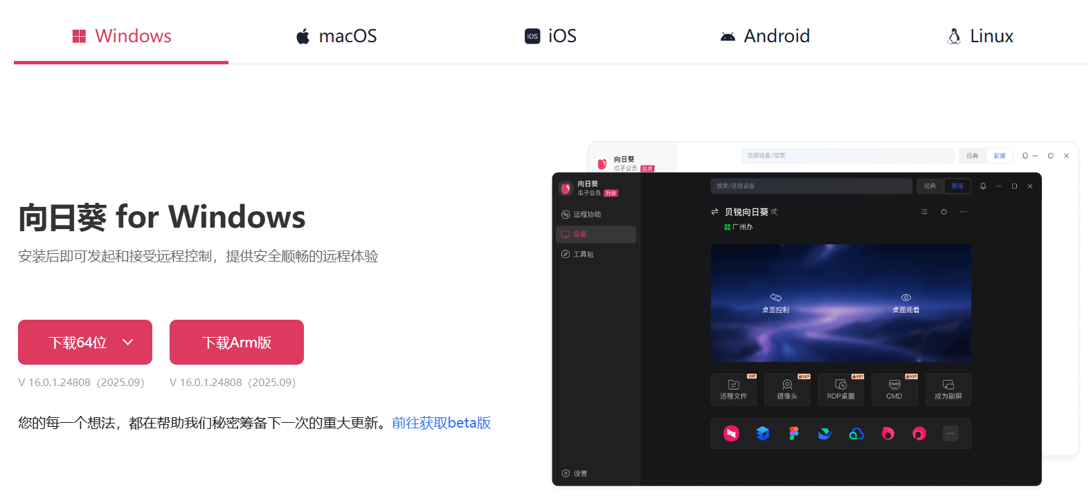 最后登场的是老前辈向日葵,是国内出现比较早的远程控制软件之一。作为一款老牌软件,向日葵不仅提供了远程桌面控制、文件传输等功能满足用户的需求,而且在稳定性和兼容性等方面也有不错的表现。