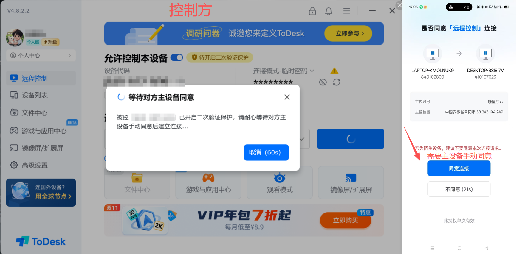 通过测试,与ToDesk连接速度差不多,基本都可以在3~4秒内完成。