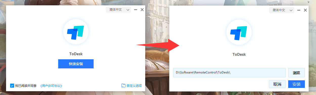 ToDesk 的安装过程简洁明了,不需要复杂的操作,并且安装完成后,ToDesk会自动帮你进行一些基础的设置,我们只需要登录账号后就可以使用,即使是刚接触电脑的小白也可以快速上手,下面我将实际操作一下。