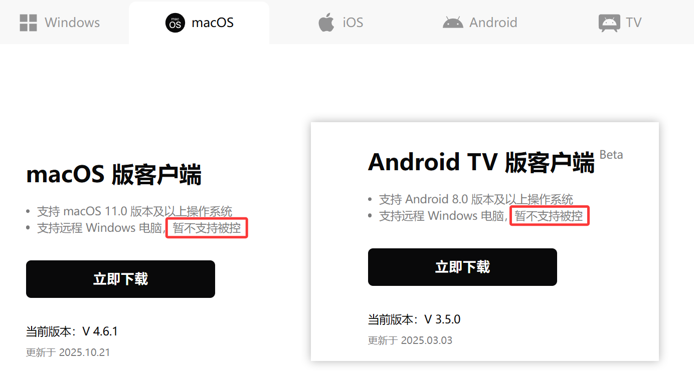 | UU远程 | ✅ | ✅(受限) | ❌ | ✅(受限) | ✅(受限) | ✅(受限) | ❌ |