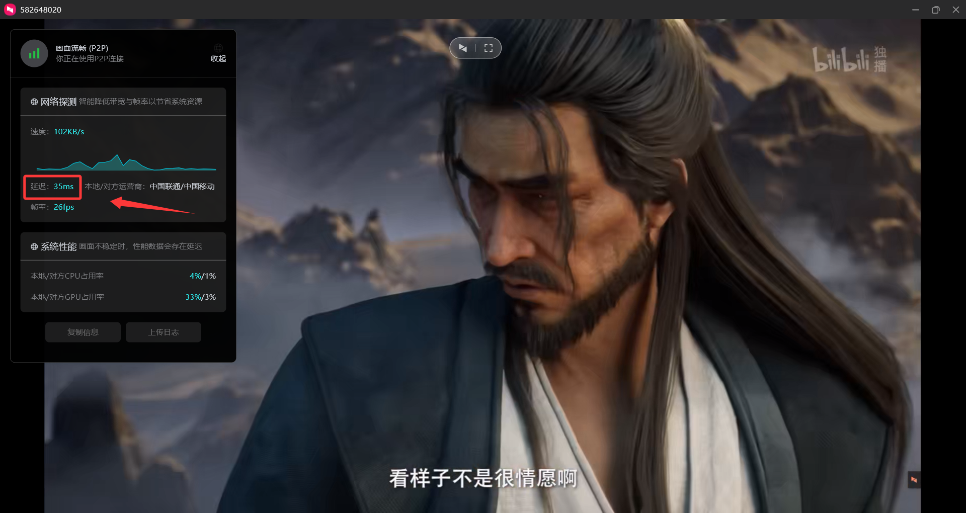 在播放过程中,UU远程的网络延迟平均在35~45ms并且有时候不稳定,可能会出现播放卡顿。