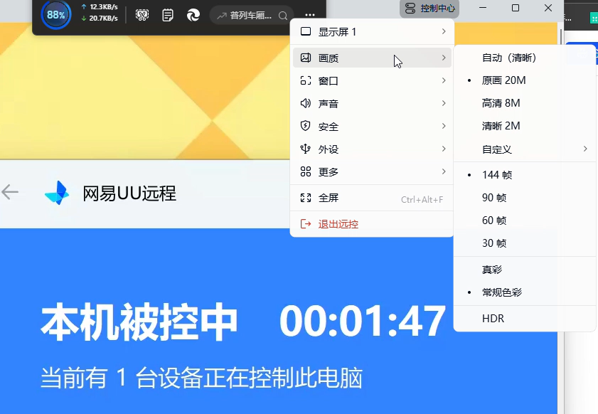 | UU远程 | 平均3~4秒 | 35~45ms,不稳定可能出现卡顿 | 不支持跨账号传输 | 最高4K 144帧 |