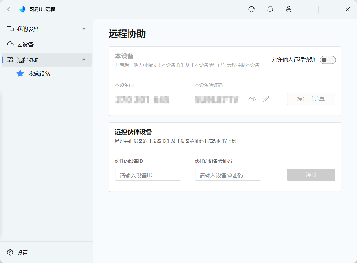 - 在初始设置上,同样可以使用主页最显眼位置的设备ID和临时密码向其他用户发起连接,无需任何学习成本。