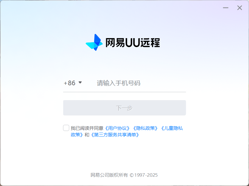 - 登录账户,即可进入UU远程界面(这里仅有手机登录)