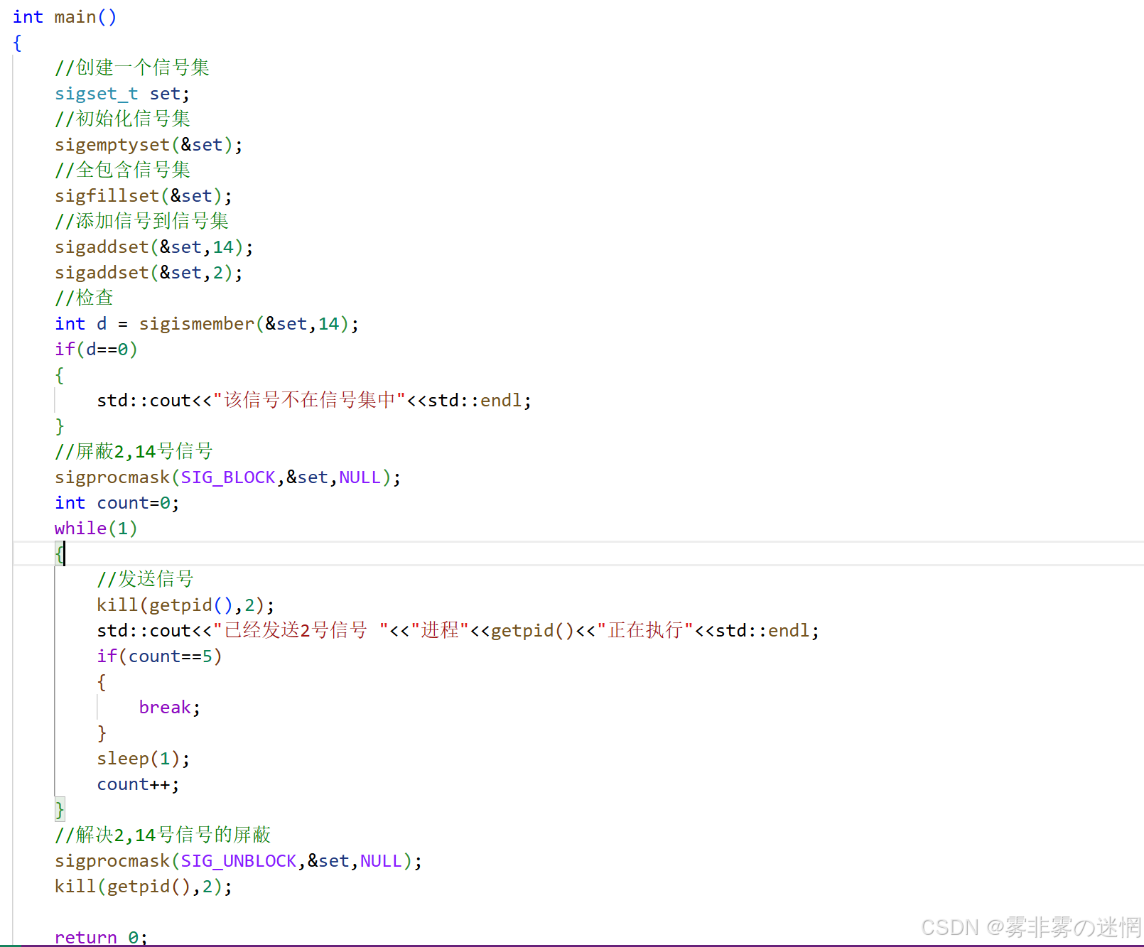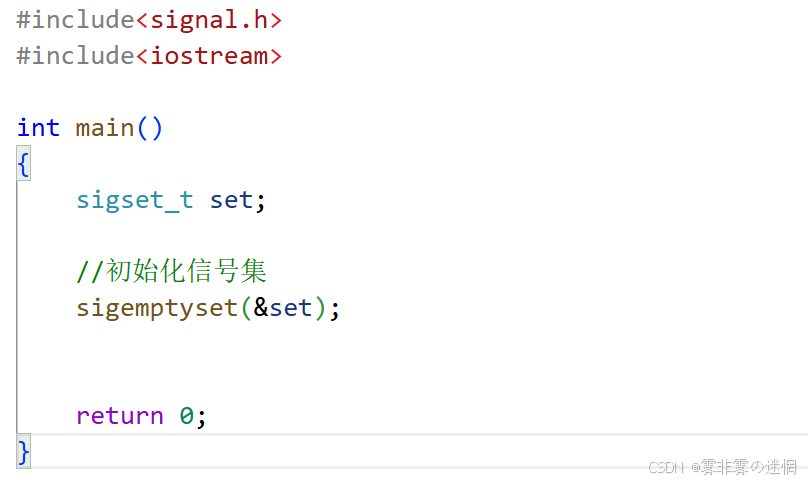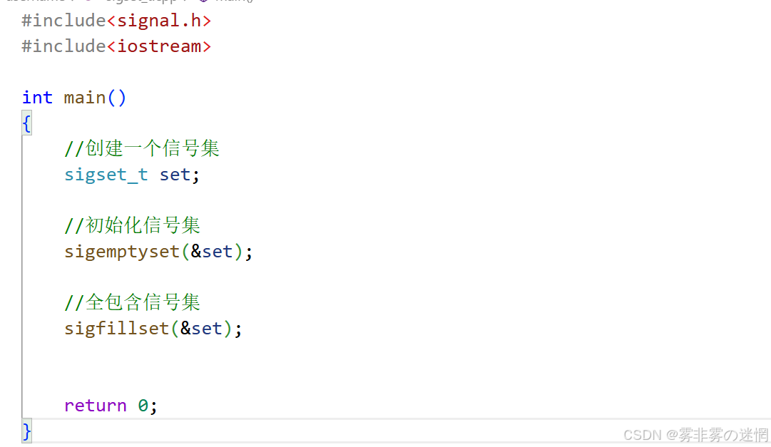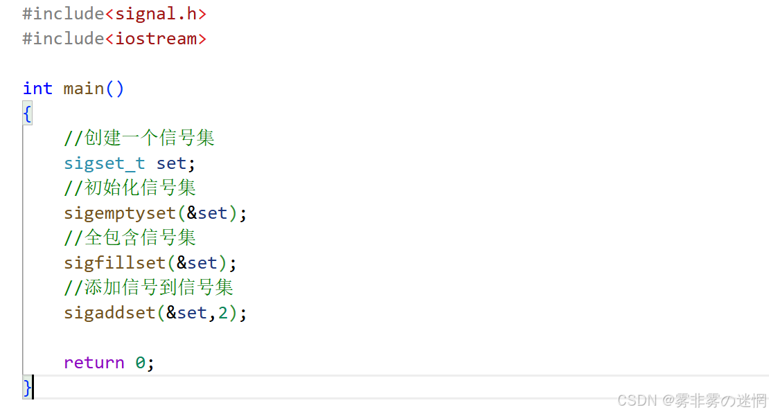 set:指向sigset_t类型的指针,代表要操作的信号集signo:要添加的信号编号