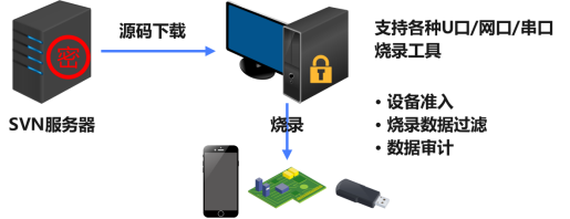 在用户终端,每个使用SVN的开发者的机器上都需要安装SDC沙箱客户端。SDC沙箱加密又称环境加密,指不单独针对某一类程序、某一类文件类型、某一个工作场景、某一些文件大小等等的针对性文件加密。而是直接从底层驱动层接管整个操作系统,对操作系统进行全方位的环境管控。用户所处的环境就是被加密的,只要是在环境内的任何文件(包含结构型与非结构型)都是被环境加密保护的。该客户端对开发者的电脑进行全面的安全管控,包括但不限于文件保护、访问控制和行为监控。这确保了从服务器端检出的源代码在本地的安全存储和处理,防止了源代码在开发者环境中的潜在泄露。