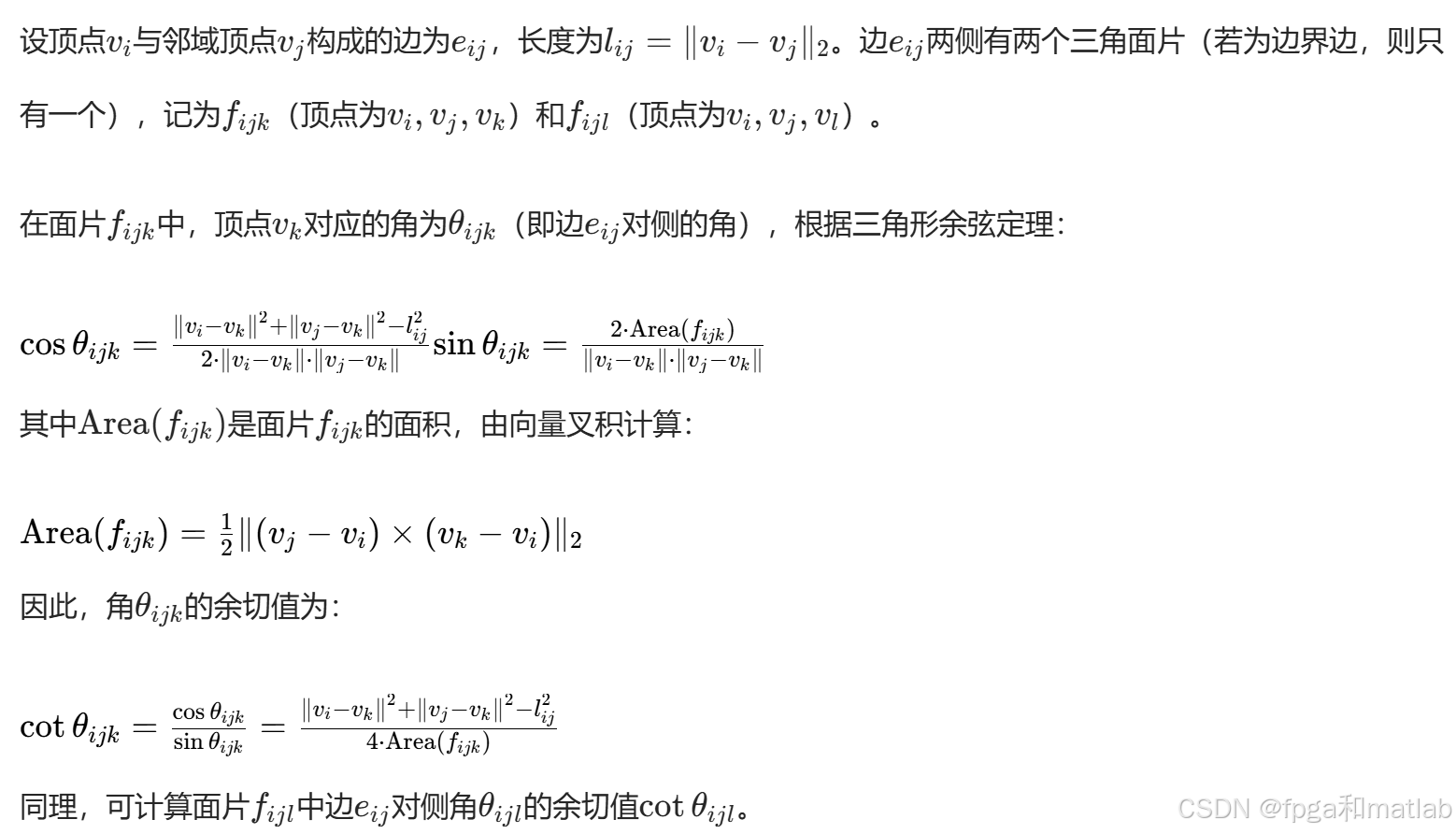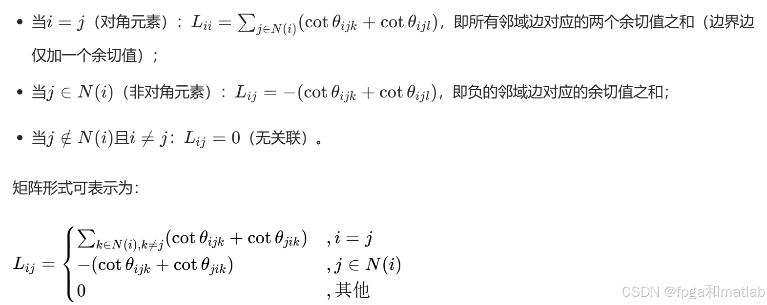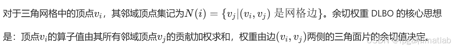余切权重DLBO矩阵L的元素Lij(应顶点vi和vj的关联权重)定义如下: