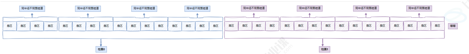 操作系统把一维数组进行分区,类似Windows的C、D盘,每一个区的最小单位是柱面。