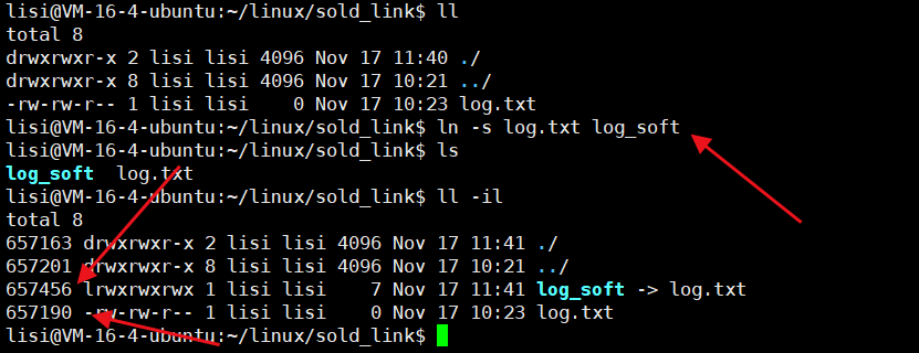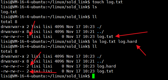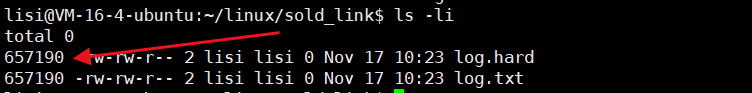 答:由上图可以知道,他们两个的 inode 编号是一样的,所以他们两是同一个文件;建立硬链接的本质其实就是在当前目录下新建一个新的文件名(字符串)和目标文件的映射关系。