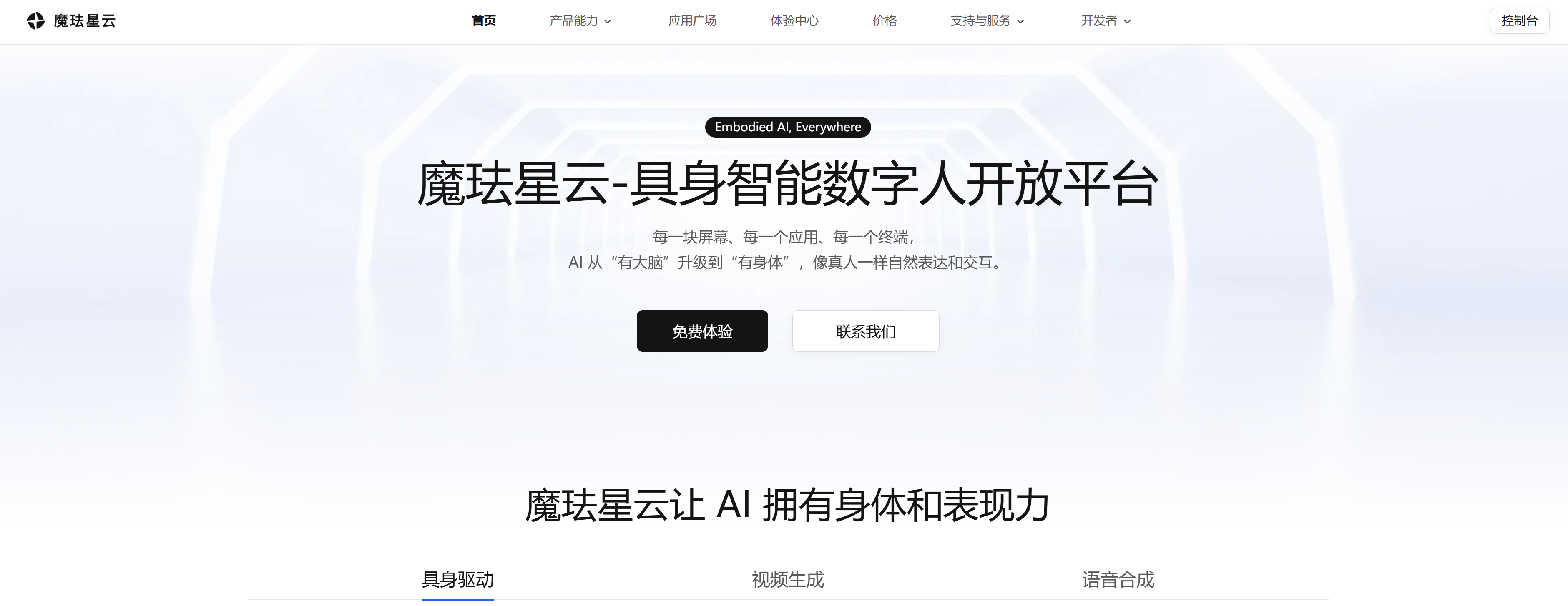 魔珐星云是魔珐科技于2025年10月29日正式上线的具身智能3D数字人开放平台,它是高质量、低时延、高并发、低投入、多终端的具身智能 3D 数字人开放基础设施,核心使命是为 AI 赋予 “身体” 与 “表达能力”,将人机交互从单一文本模式升级为语音、表情、动作兼备的多模态交互。