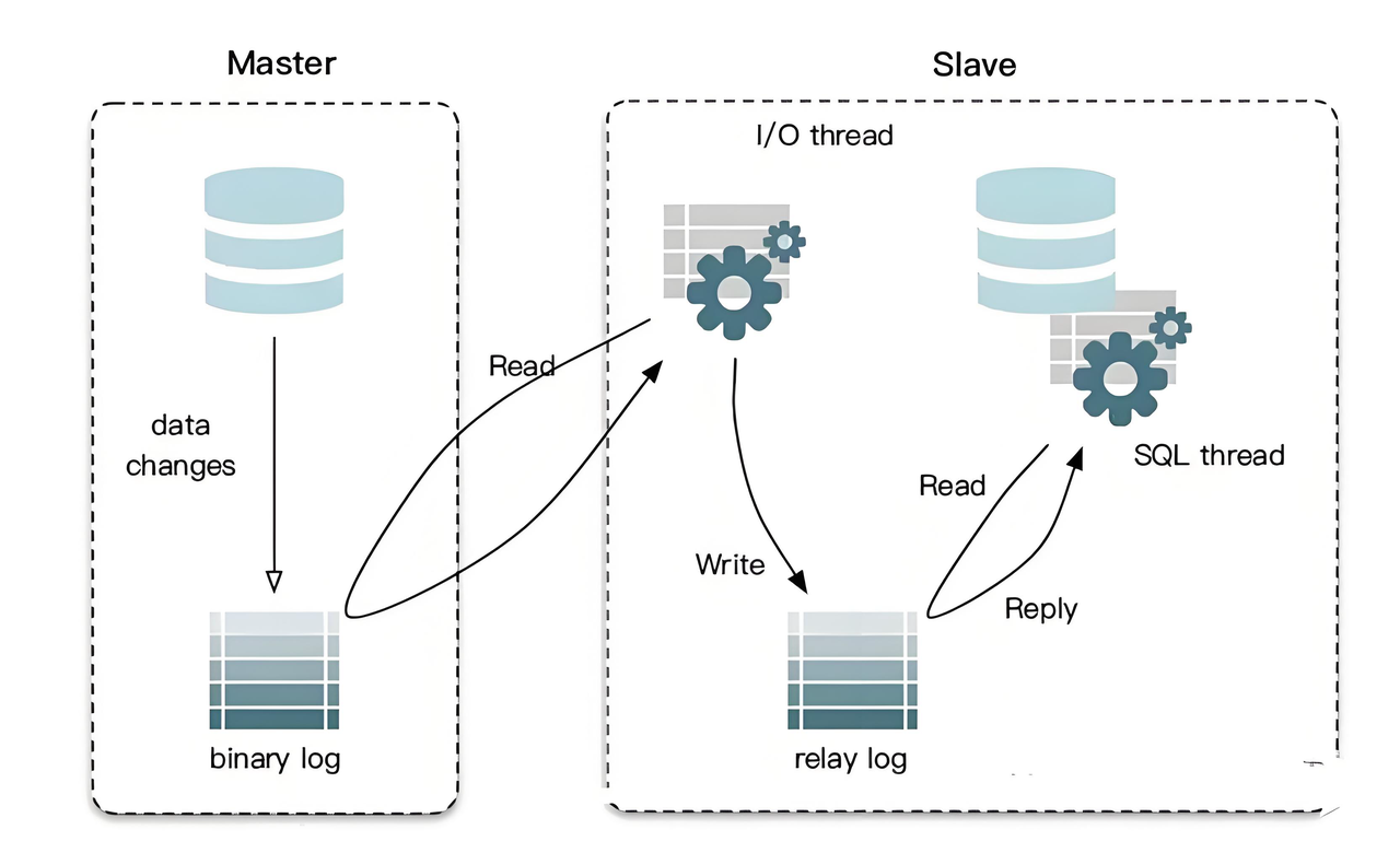 IO线程:从服务器上的IO线程连接到主服务器,并请求从当前的二进制日志文件位置开始复制数据。主服务器接收到这个请求后,通过IO线程发送二进制日志的内容到从服务器。