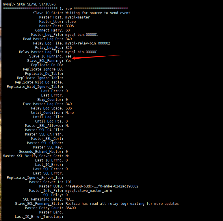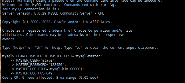 CHANGE MASTER TO MASTER_HOST='mysql-master',