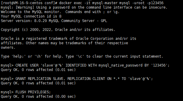 CREATE USER 'slave'@'%' IDENTIFIED WITH mysql_native_password BY '123456';