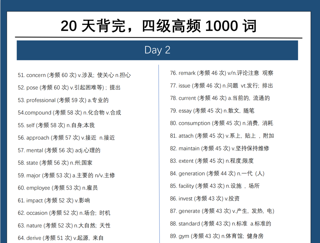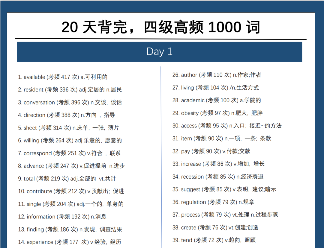 2025年12月英语四级考试高频必背词汇1000个~PDF电子版