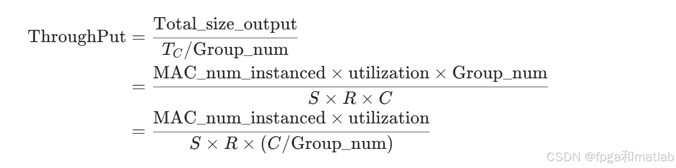 对于深度可分离卷积:由于输入通道数与分组数相等(C=Group_num),吞吐量公式简化为:
