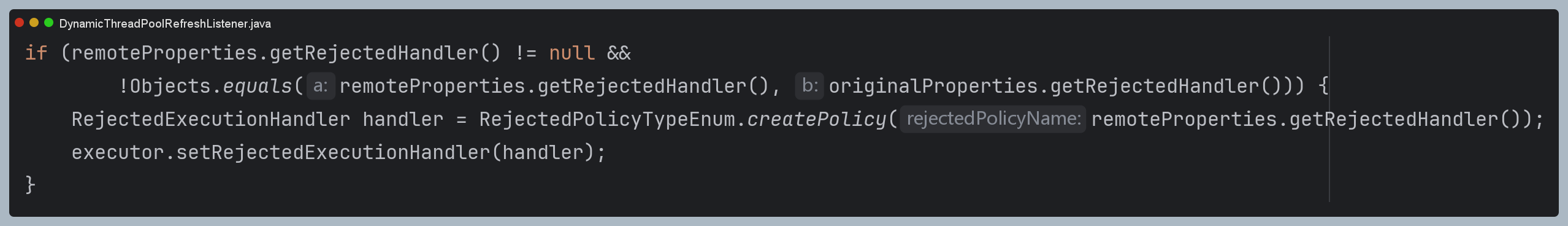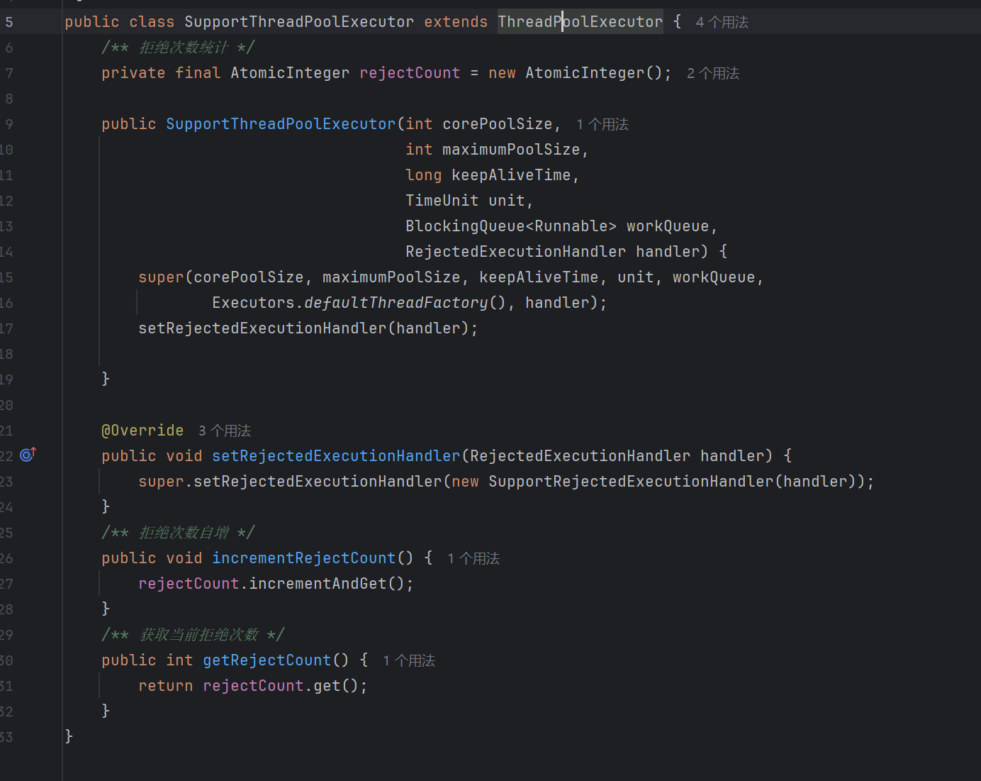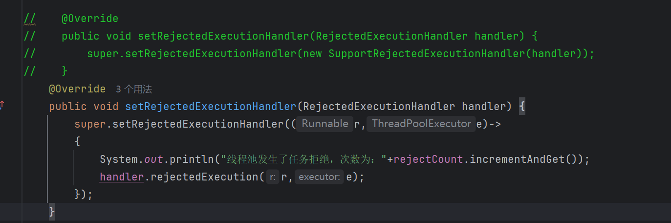 原因:我们要做的是动态线程池,需要支持可以动态调整拒绝策略,所以说需要重写set方法,让我们后面可以更换。