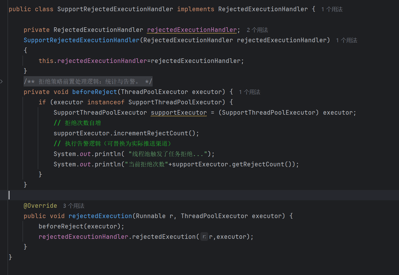 代理类接口,在调用原来的拒绝策略处理器前先调用beforereject