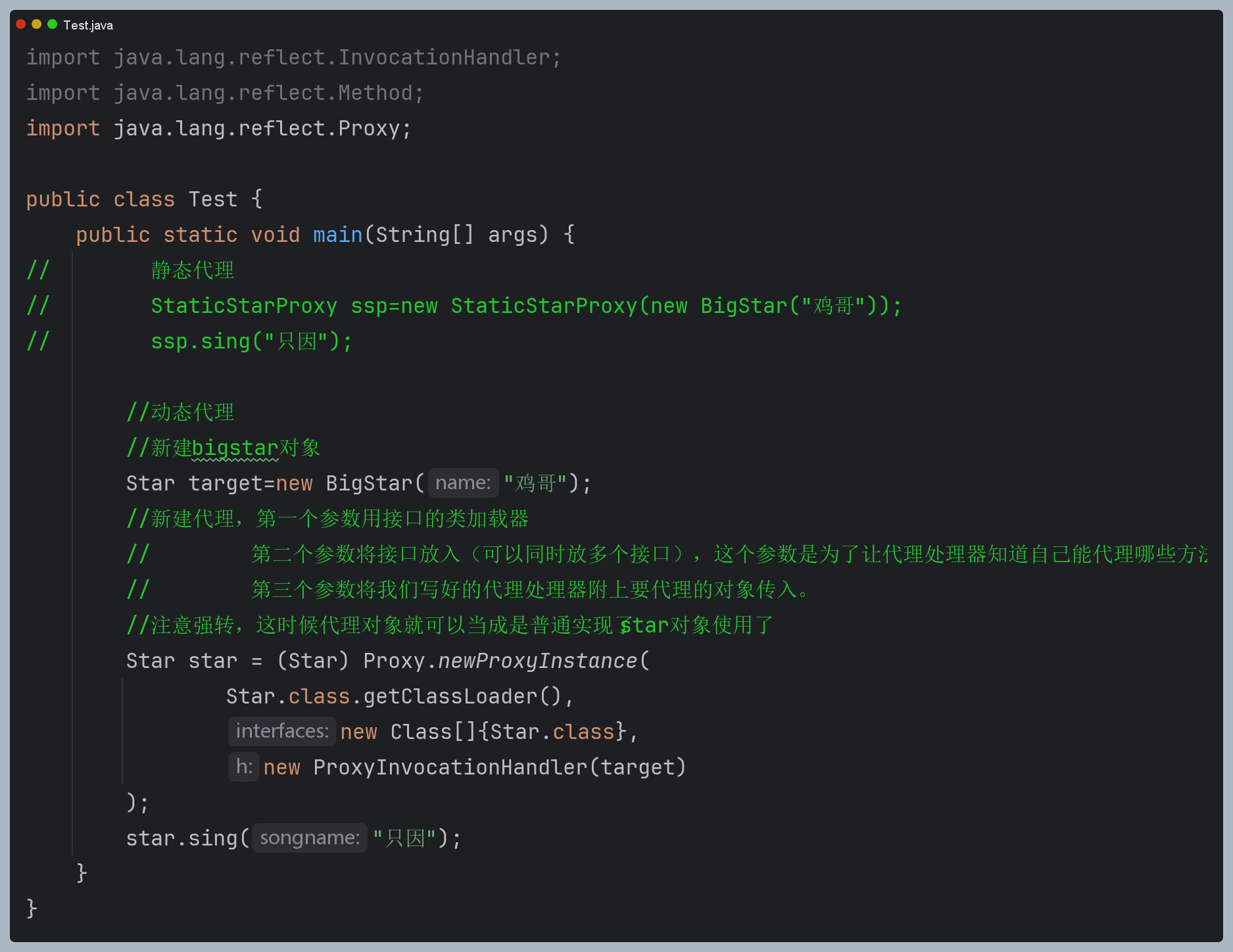 接口、实现类和静态代理一样,我们已经有了star和bigstar