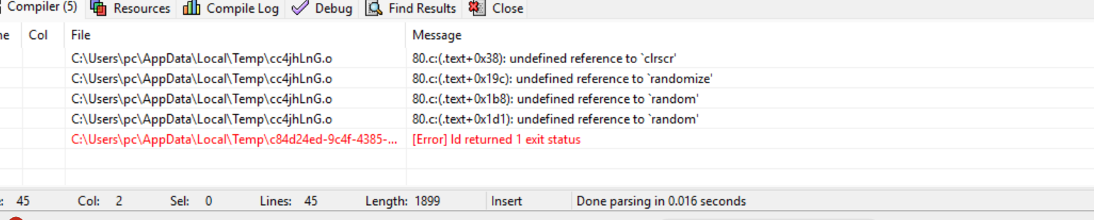 (2)randomize ()未定义。现代C标准中需要用srand()/rand()替代。