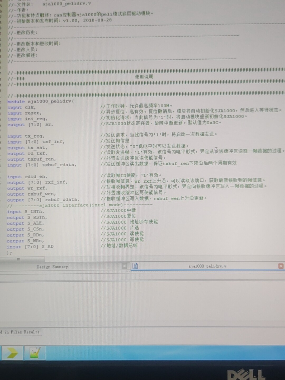 SJA1000 CAN总线verilog写的SJA1000 CAN总线控制器。 程序使用三段式状态机,对于语句均有箱子的中文注释,同时还有相关的文档说明。 可直接拿来使用,同时适合新手学习规范写作代码。