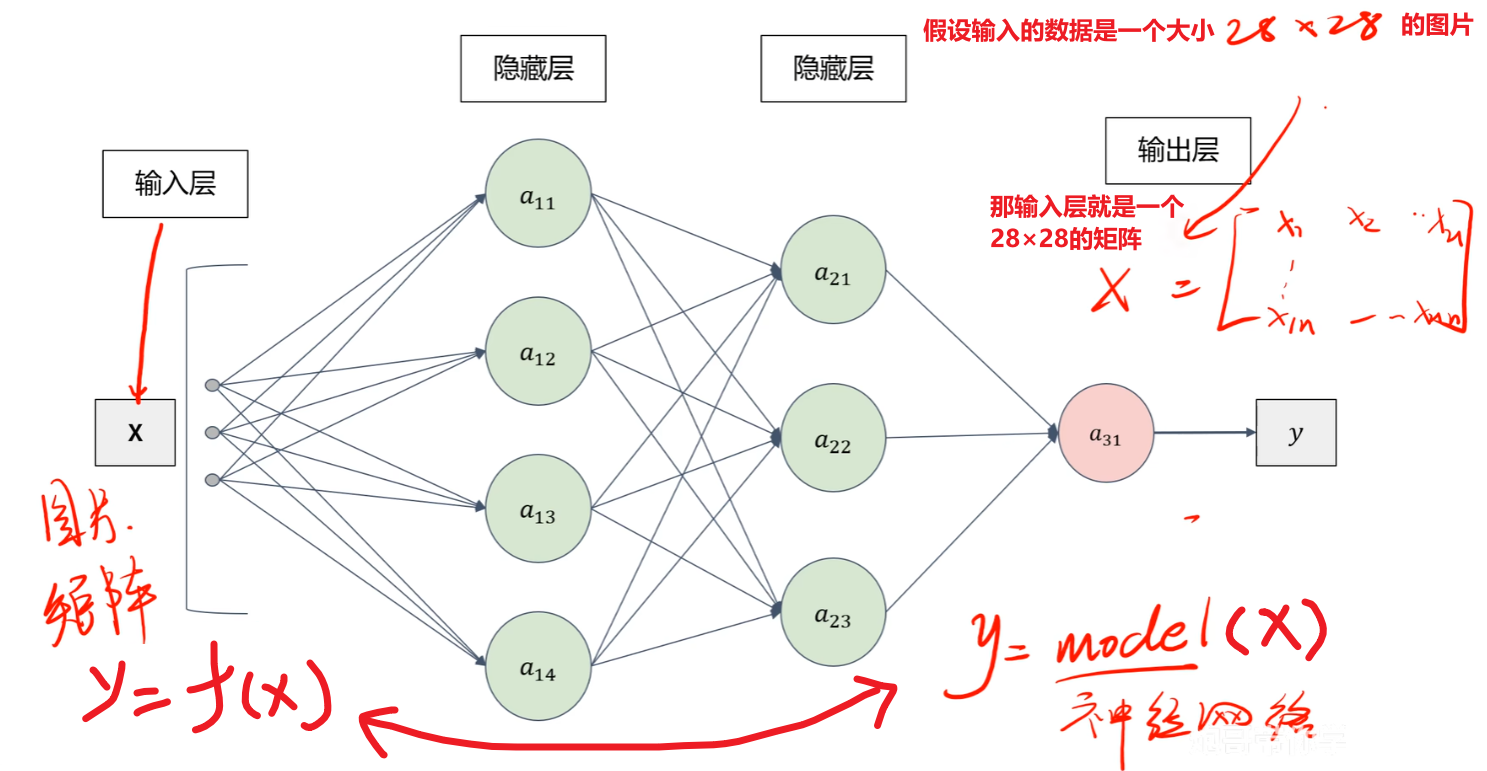 - 最终整个式子是【y = σ3( W3⋅σ2 ( W2⋅σ1 ( W1x+b1 ) +b2 ) +b3 )】
